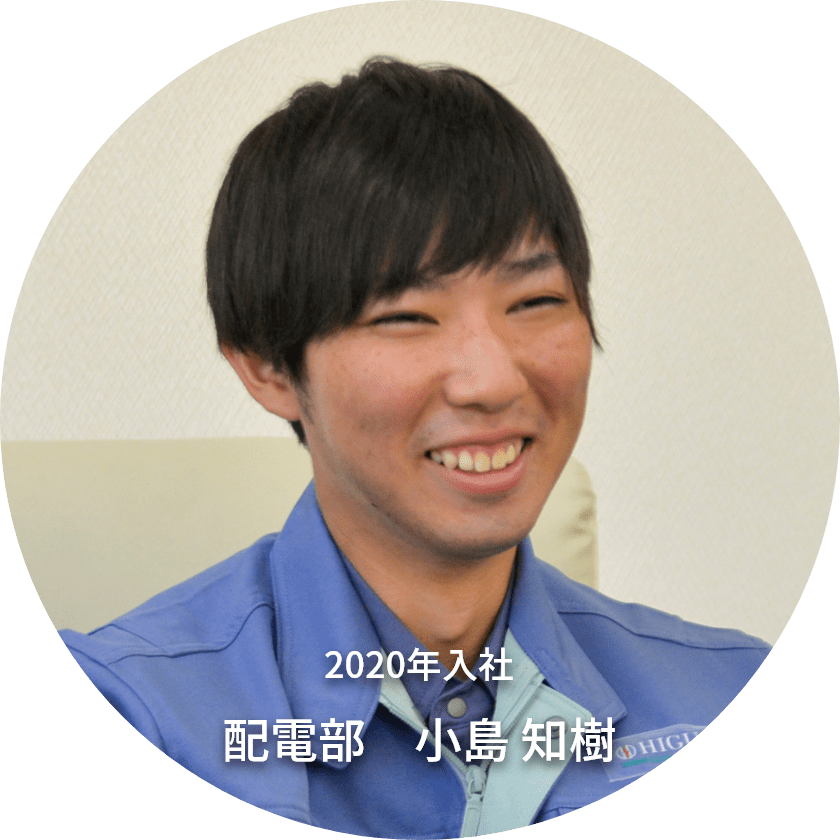 私が所属する配電部という部署は、街中にある電柱を建てたり、電線を張ったりする仕事です。入社当時は一つひとつの仕事を先輩に教えてもらい、マネをしながら、仕事の流れを覚えていきました。最近は少しずつできる仕事が増えてきて、作業だけでなく高所作業車や穴掘建柱車と呼ばれる大きな特殊車両を動かせるようにもなりました。新しいことができるようになり、どんどん仕事が楽しくなってきています。