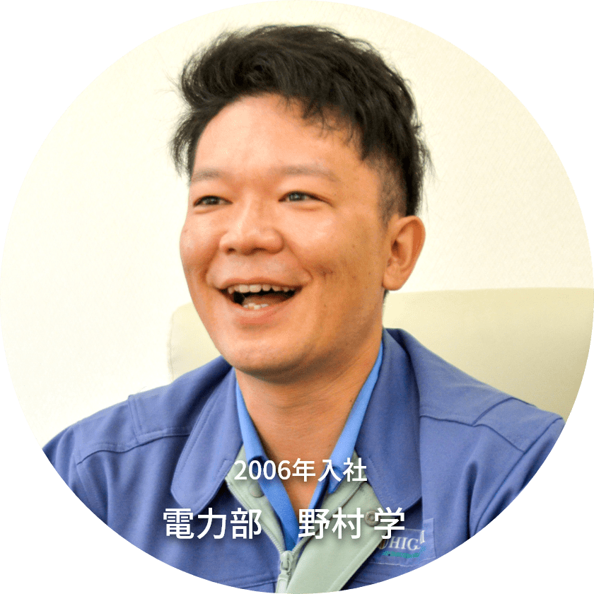 私が担当している電力部では、発電・変電施設構内で各種機器を据え付けたり、機器の保守・点検を行ったりしています。自分の身体より大きな機器を新規で据え付けることも多く、ゼロからダイナミックなモノづくりに携われるというやりがいがありますね。発電・変電施設の工事は、一つのミスで街全体の電気に影響を及ぼしてしまうという大事な仕事で責任感はありますが、この仕事を誇りに思っています。