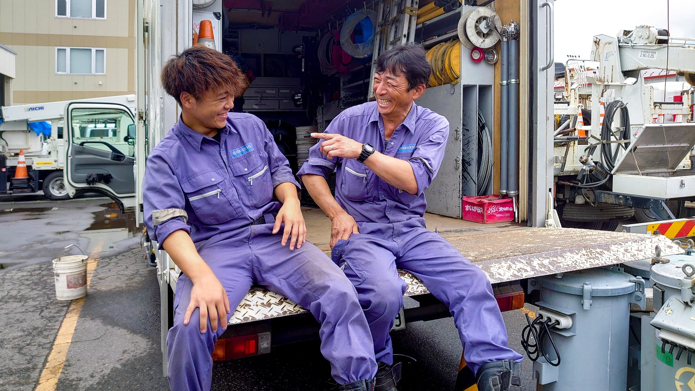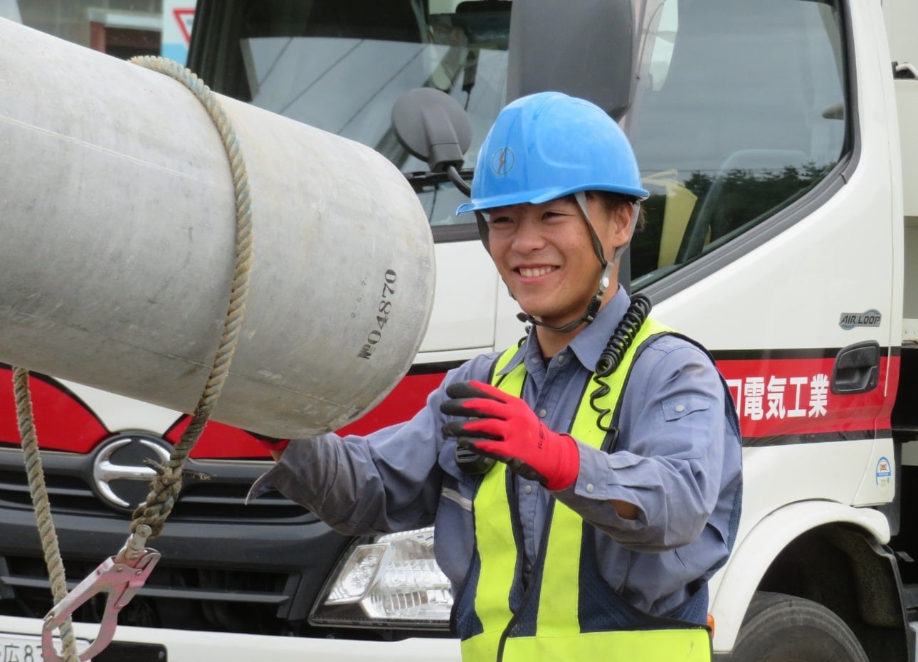 当社への入社の決め手は、道東エリアのなかでも多種多様な電気工事を手掛けていることと、会社見学をさせていただいた際に、皆さんの仲がとても良く家族のような雰囲気を感じたから。皆さんとても優しく仕事を教えてくださるので、ここに決めて間違いなかったと思います。
